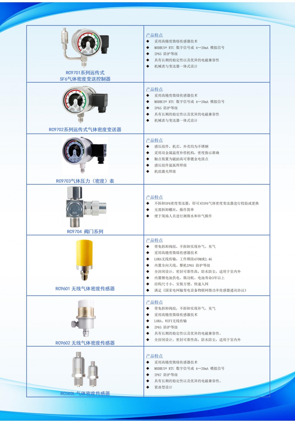 传感器在电力领域的应用 大祺传感是经验丰富的发电厂测量仪表制造商,提供适用于能源行业并具备相应认证的压力、液位和流量测量仪表。仪表经久耐用,有助于降低运营成本、提升过程安全。我公司生产制造的RC580L气体密度传感器、C9601无线气体密度传感器、RC9602无线气体密度传感器、RC9701系列远传式SF6气体密度变送控制器、RC9702系列远传式气体密度变送器、RC9703气体压力(密度)表、RC9704 阀门系列产品适用于风力发电机压力、温度测量。风力发电机需要一个控制系统来优化涡轮机在风向的方向(偏航控制)并调整叶片的角度(桨距控制),这个控制系统是通过基于液压原理的气缸系统完成的,压力传感器在其中起到重要的作用。 也适用于火力发电的压力、液位、流量、温度监测。在电力行业,尤其是发电厂和输电系统中,精确监测和控制压力、液位、温度和流量至关重要。这些参数直接影响系统的运行效率和安全性。我们的监测仪表解决方案集成了先进的传感器技术和智能控制系统,能够在复杂环境下提供精准的数据和*的控制,优化电力生产和传输过程。