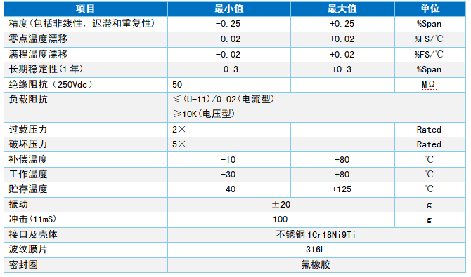 性能参数 供电电源:12~30VDC 参考温度:25℃