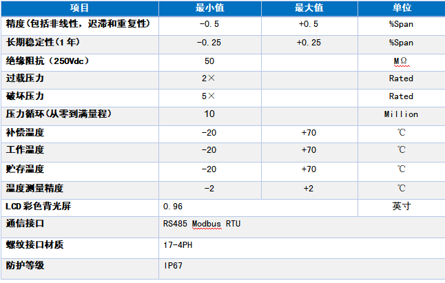 注:特殊需求,请与生产商联系。 性能参数 参考温度:25℃