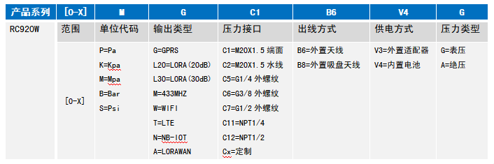 产品特点 支持多种无线传输方式 24位高精度ADC采集 高能锂电池供电,待机时间长 低功耗,静态电流低达30uA OLED显示,耐低温 结构小巧,现场安装方便 具备网关功能,可以读取RS485设备数据 产品说明 RC920W防爆型无线网关压力变送器是一款高能锂电池供电,具有无线通信功能的压力检测智能仪表,同时可以与流量计仪表进行485通信,读取流量计仪表的数据。该仪表采用微熔压力传感器或者扩散硅芯体作为压力信号测量元件,采用24位高精度AD转换器采集压力、温度信号,实现了对变送器进行宽温度范围的零点和温度性能补偿。支持多种无线:433、LORA、LORAWAN、GPRS、LTE、NBIOT、WIFI、ZIGBEE等。人机界面采用1.3寸低功耗液晶屏,操作方便。应用领域是天然气、石油化工、消防、自来水、工业监控系统等,通过无线通讯的方式,实现信号远距离的无线传输,从而简化了安装方式、节约了布线成本。 RC920W防爆型无线网关压力变送器,产品技术条件和验证方法符合GB3836.1-2010《爆炸性环境第1部分设备通用要求》和GB3836.2-2010《爆炸性环境第2部分由隔爆外壳“d”保护的设备》的规定。 RC920W防爆型无线网关压力变送器经过国家指定的防爆产品检验机构审查合格并颁布“防爆合格证”,防爆标志Exd ⅡC T6 Gb。 量程选择