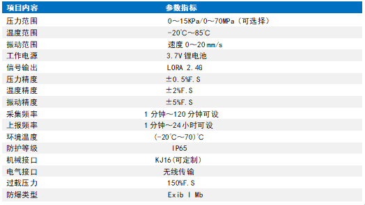 特点 可测量多种参数 无线通讯距离远≤200m(LORA) 采用高性能MEMS芯片,测量精度高,抗干扰能力强 高能锂电池供电,待机时间长 低功耗设计,静态电流可低达15uA 结构可靠,防爆性能好 产品说明 GD3W矿用本安型(无线)多参数传感器是一款由高能锂电池供电,具有无线通讯功能,可采集压力、温度和振动的一款高性能、低功耗、抗干扰和复合型多参数传感器。该传感器采用微熔压力芯体或者扩散硅芯体作为压力信号测量元件,温度采用进口铂电阻温度传感器作为测量元件,振动选用高性能的MEMS芯片嵌入开发,支持无线LORA输出。产品被广泛应用在煤矿、石油化工、冶金、发电等行业。产品通过无线通讯的方式,实现信号远距离传输,从而简化了安装方式、节约了客户的施工成本。